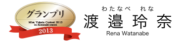 この度城崎温泉ミスゆかたコンテスト2013でグランプリを受賞させていただきました渡邉玲奈です。グランプリを受賞できたのは私を支え、応援してくださった皆様のおかげです!また、観光協会の皆様にも投票期間中大変お世話になり、幸せな経験を沢山させていただきました。本当にありがとうございます!!
